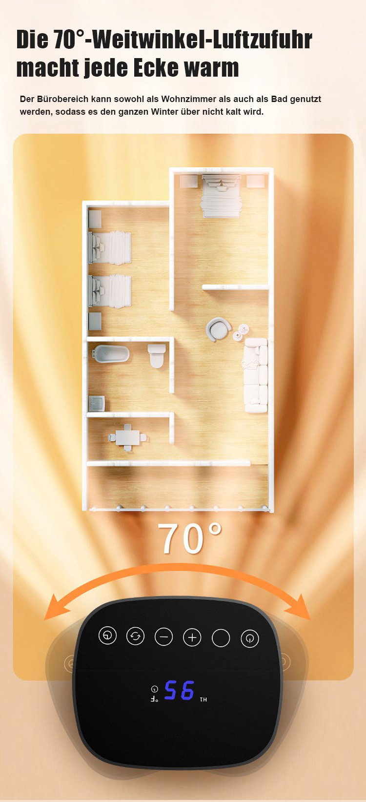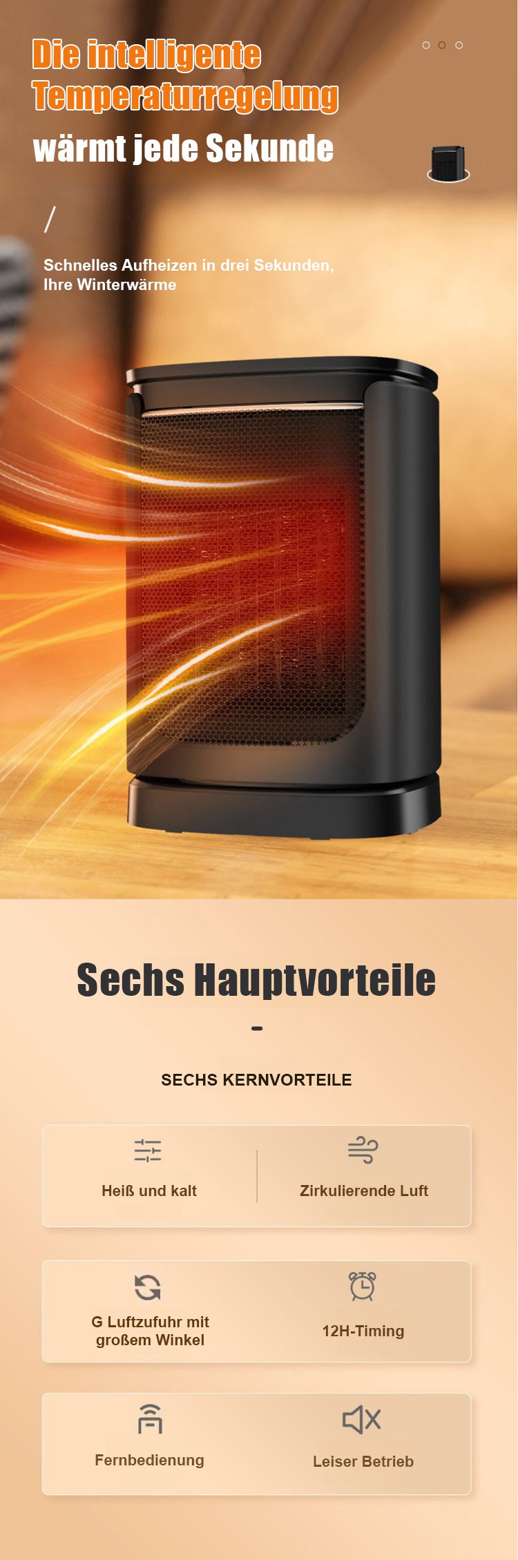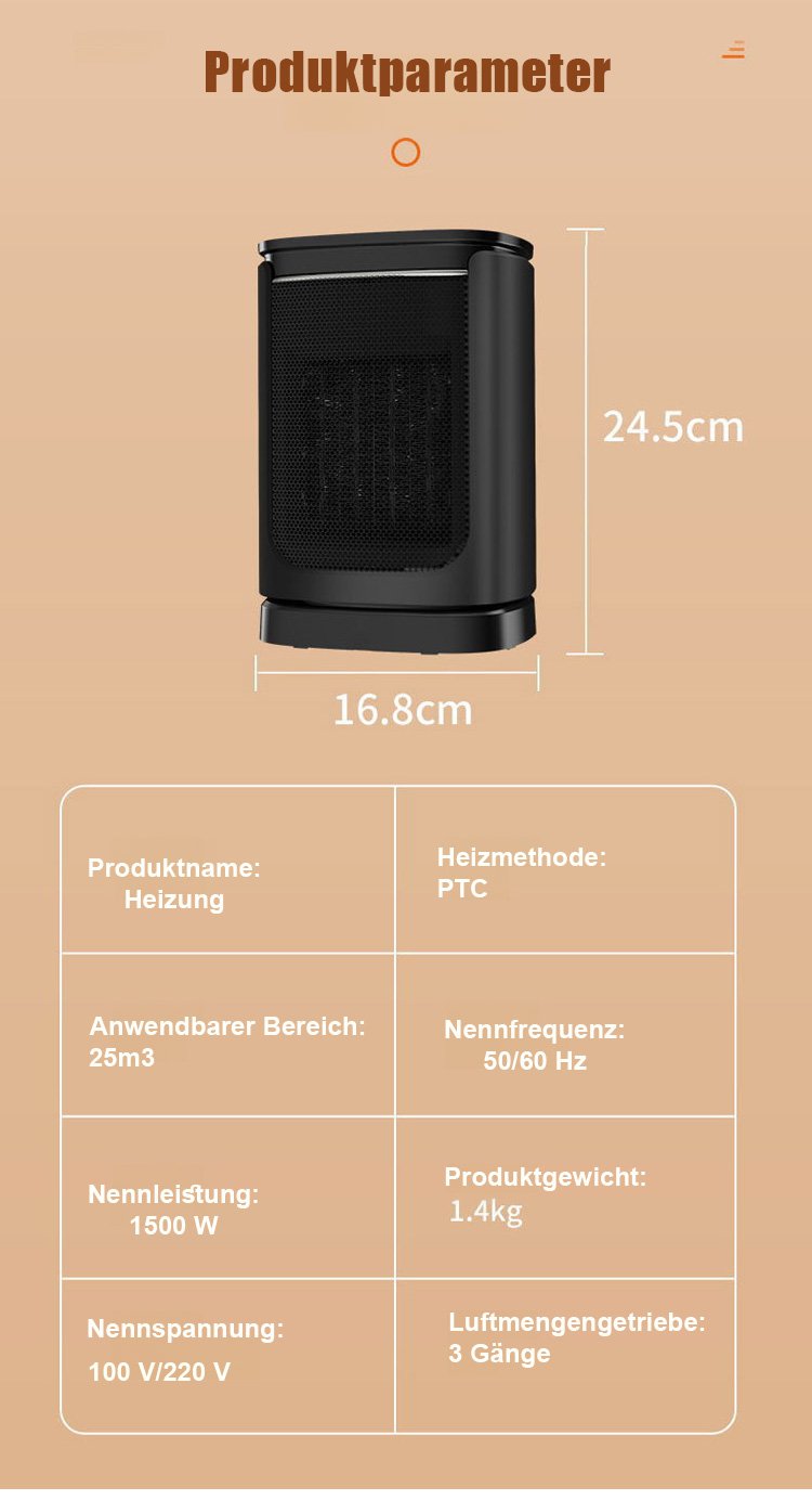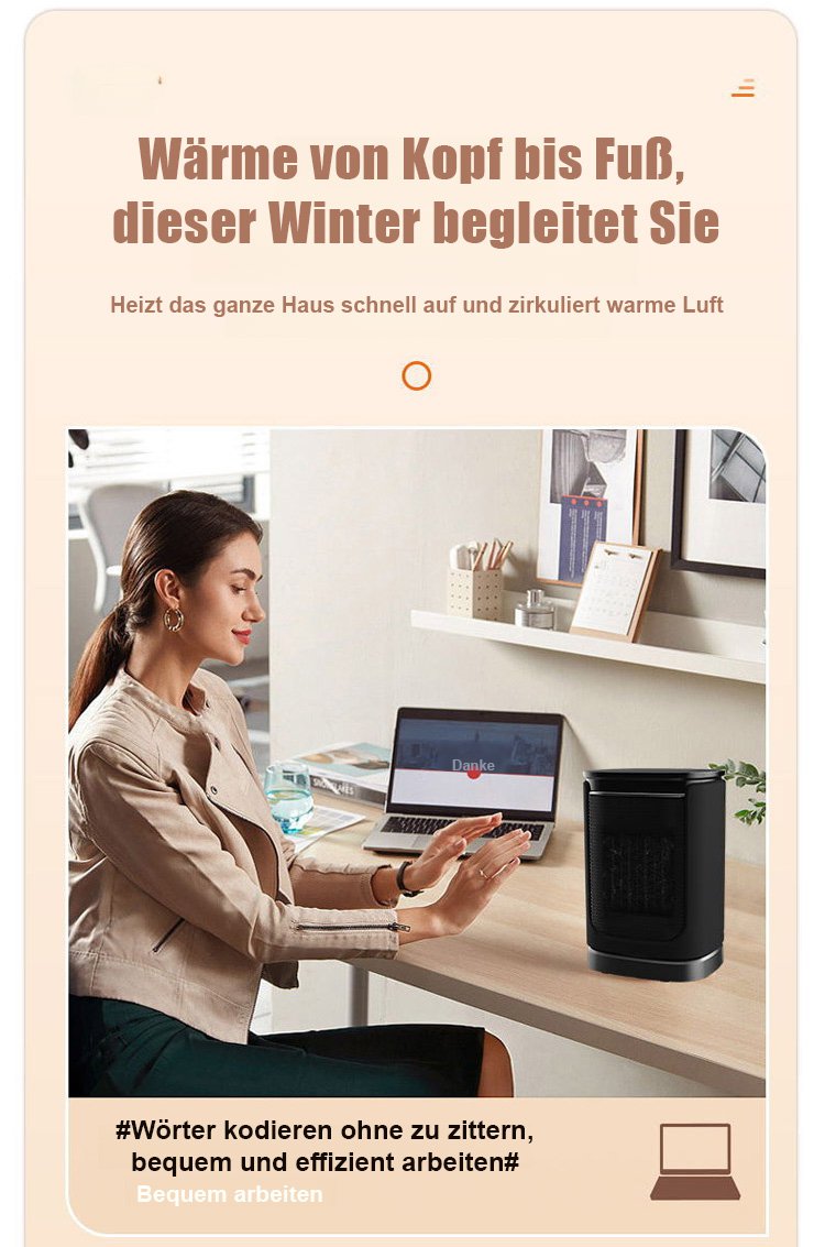 【Drei-Sekunden-Schnellheizung】Tragbarer Heizlüfter mit Stromausfallschutz